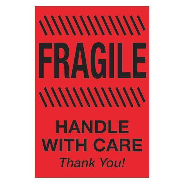 Tape Logic Labels, "Fragile - Handle With Care", 4" x 6", Fluorescent Red, 500/Roll