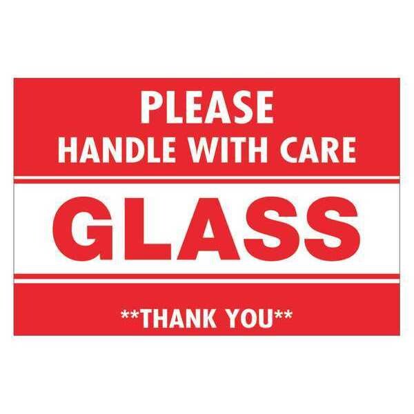 Tape Logic Labels, "Glass - Handle With Care, 2" x 3", Red/White, 500/Roll