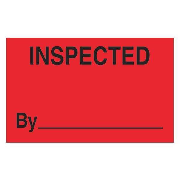 Tape Logic Labels, "Inspected", 1 1/4" x 2", Fluorescent Red, 500/Roll