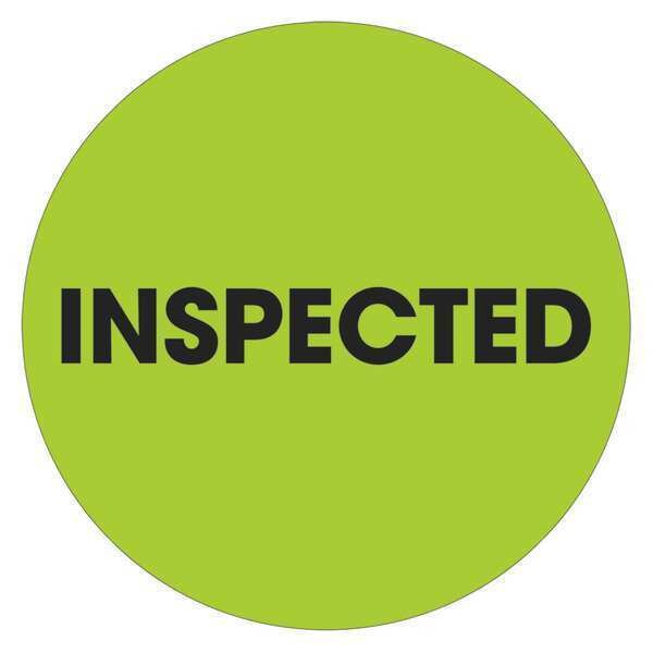 Tape Logic Labels, "Inspected", 2" Circle, Fluorescent Green, 500/Roll