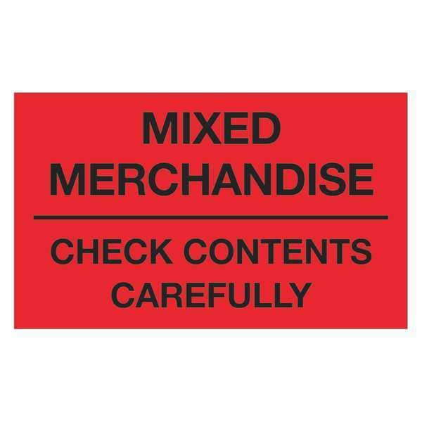 Tape Logic Labels, "Mixed Merchandise - Check Contents Carefully", Fluorescent Red, 500/Roll