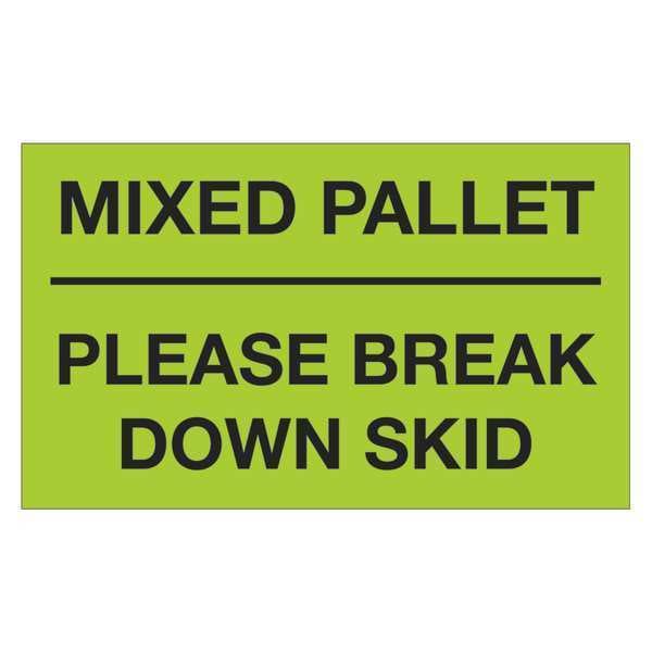 Tape Logic Labels, "Mixed Pallet - Please Break Down Skid", Fluorescent Green, 500/Roll