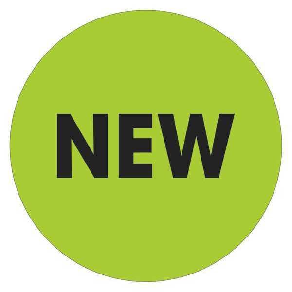 Tape Logic Labels, "New", 2" Circle, Fluorescent Green, 500/Roll