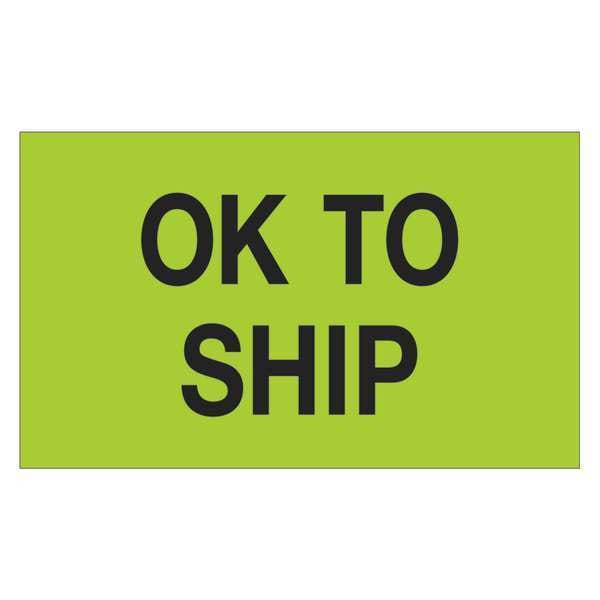 Tape Logic Labels, "OK To Ship", 3" x 5", Fluorescent Green, 500/Roll