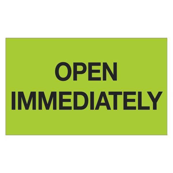 Tape Logic Labels, "Open Immediately", 3" x 5", Fluorescent Green, 500/Roll
