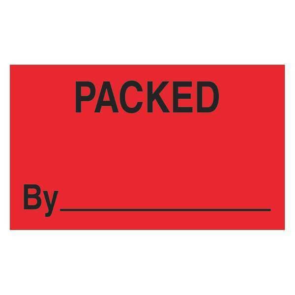 Tape Logic Labels, "Packed By", 3" x 5", Fluorescent Red, 500/Roll
