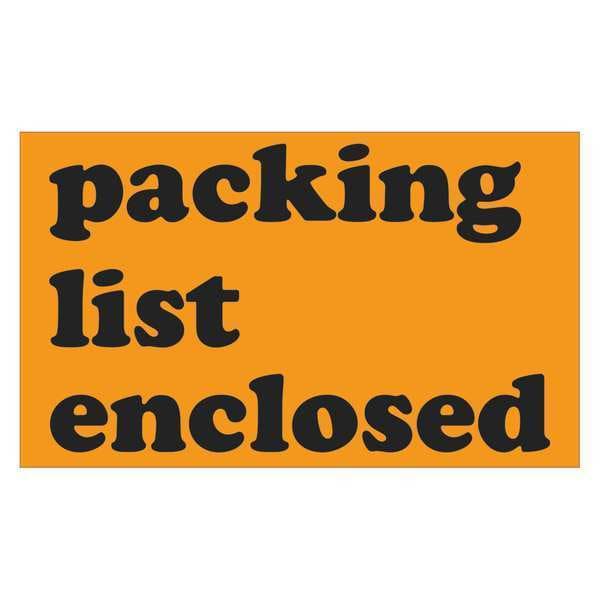 Tape Logic Labels, "Packing List Enclosed", 3" x 5", Fluorescent Orange, 500/Roll
