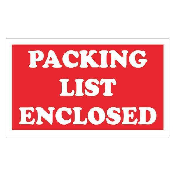 Tape Logic Labels, "Packing List Enclosed", 3" x 5", Red/White, 500/Roll