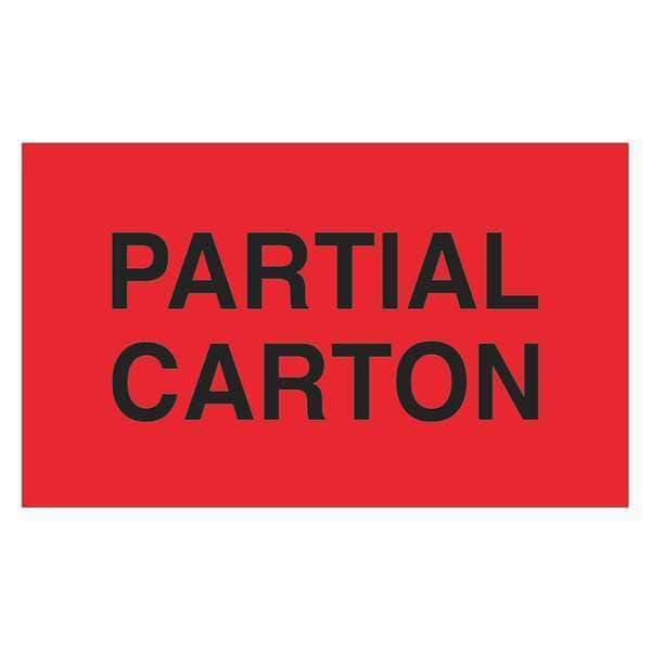 Tape Logic Labels, "Partial Carton", 3" x 4", Fluorescent Red, 500/Roll