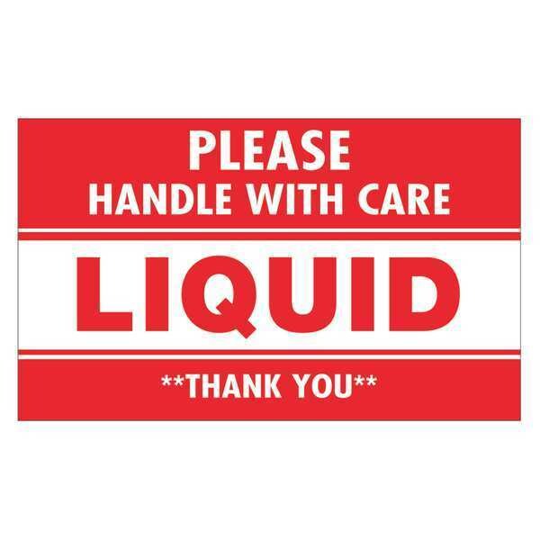 Tape Logic Labels, "Please Handle With Care - Liquid - Thank You, 3" x 5", Red/White, 500/Roll