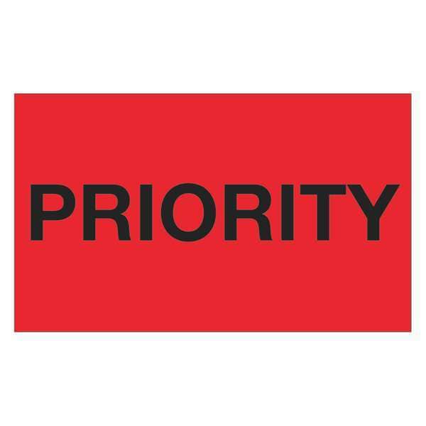 Tape Logic Labels, "Priority", 3" x 5", Fluorescent Red, 500/Roll