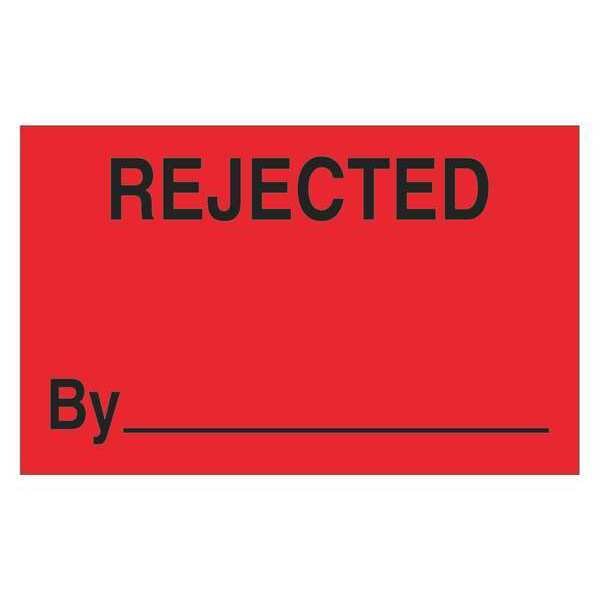 Tape Logic Labels, "Rejected By", 1 1/4" x 2", Fluorescent Red, 500/Roll