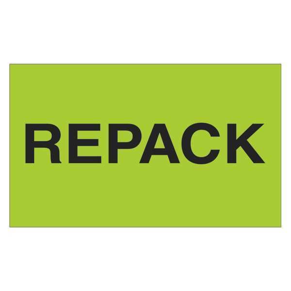 Tape Logic Labels, "Repack", 3" x 5", Fluorescent Green, 500/Roll