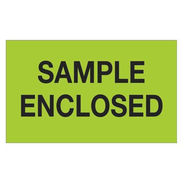 Tape Logic Labels, "Sample Enclosed", 3" x 5", Fluorescent Green, 500/Roll