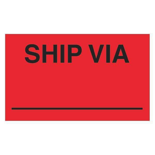 Tape Logic Labels, "Ship Via", 3" x 5", Fluorescent Red, 500/Roll