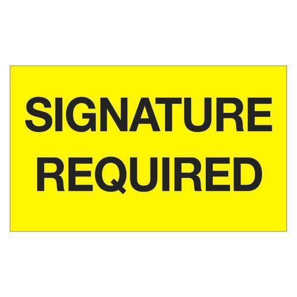 Tape Logic Labels, "Signature Required", 3" x 5", Fluorescent Yellow, 500/Roll