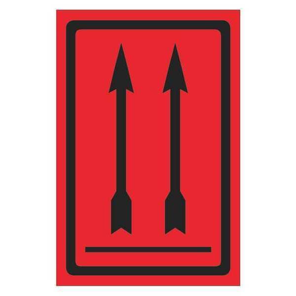 Tape Logic Labels, "Two Up Arrows Over Bar, 4" x 6", Fluorescent Red, 500/Roll