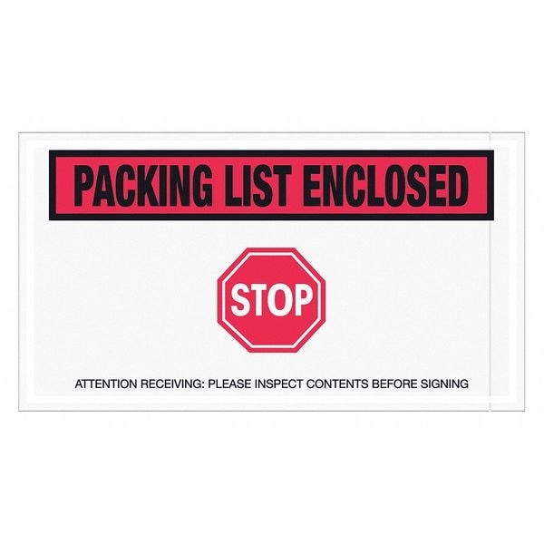 Tape Logic "Packing List Enclosed - Stop" Envelopes, 5 1/2" x 10", Red, 1000/Case