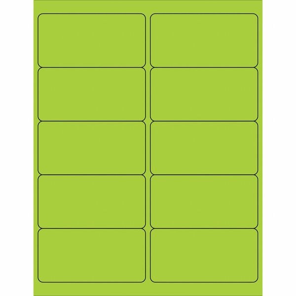 Tape Logic Removable Rectangle Laser Labels, 4" x 2", Fluorescent Green, PK1000