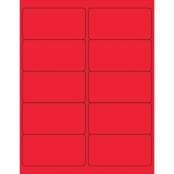 Tape Logic Removable Rectangle Laser Labels, 4" x 2", Fluorescent Red, PK1000