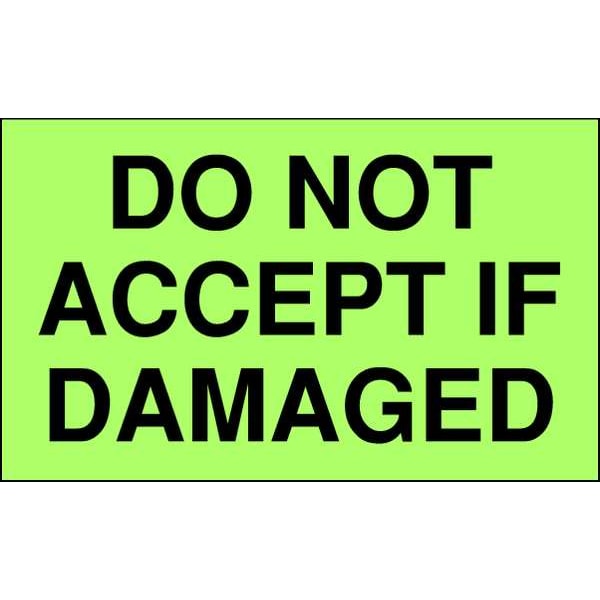 Instructional Handling Label, Language English, Primary Label Subject Care Instruction, Message Header Do Not, Message Do Not Accept, Is Damaged, Label Width 5 in, Label Height 3 in, Material Adhesive Back, Paper, Background Color Green, Labels per Roll 500, Package Quantity 500