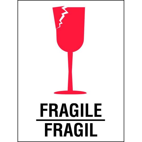 Instructional Handling Label, Language Spanish, Primary Label Subject Care Instruction, Message Header Fragile, Message Fragile/Fragil, Label Width 3 in, Label Height 4 in, Material Adhesive Back, Paper, Background Color White, Labels per Roll 500, Package Quantity 500