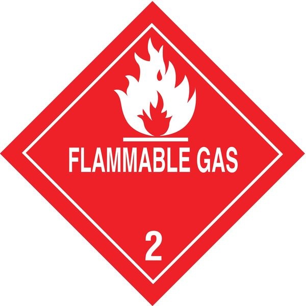 DOT Container Label, Language English, Container Label/Placard Type Hazardous Class, Hazard Class Class 2 (Gases), DOT/UN Product Form Label, Message Flammable Gas, Label Width 4 in, Label Height 4 in, Material Paper, Package Quantity 500