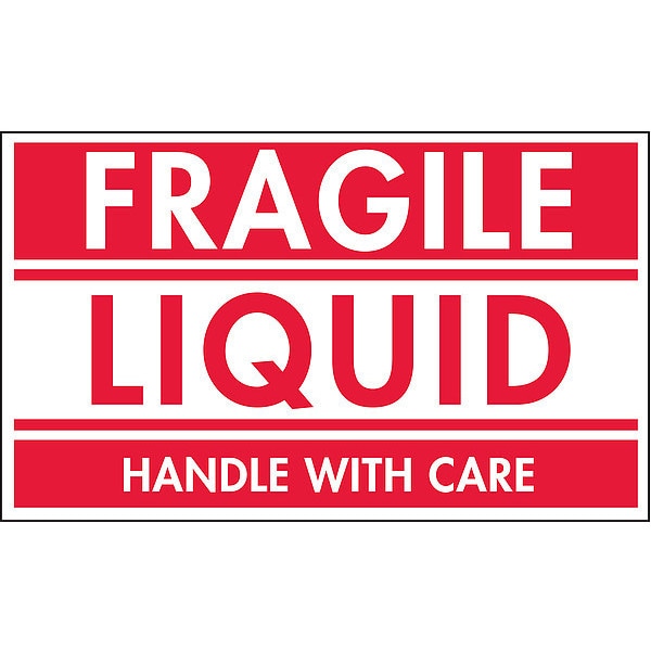 Instructional Handling Label, Language English, Primary Label Subject Care Instruction, Message Header Fragile, Message Fragile, Liquid, Label Width 5 in, Label Height 3 in, Material Adhesive Back, Paper, Background Color White, Labels per Roll 500, Package Quantity 500