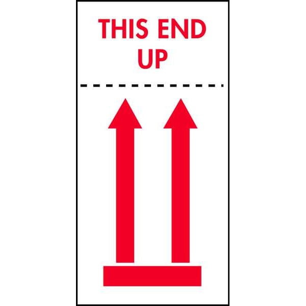 Instructional Handling Label, Language English, Primary Label Subject Shipping Arrows, Message Header Arrows with Message, Message This End Up, Label Width 4 in, Label Height 8 in, Material Adhesive Back, Paper, Background Color White, Labels per Roll 500, Package Quantity 500