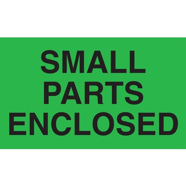 Instructional Handling Label, Language English, Primary Label Subject Shipping Contents, Message Header Interior Components, Message Small Parts Enclosed, Label Width 5 in, Label Height 3 in, Material Adhesive Back, Paper, Background Color Green, Labels per Roll 50, Package Quantity 50