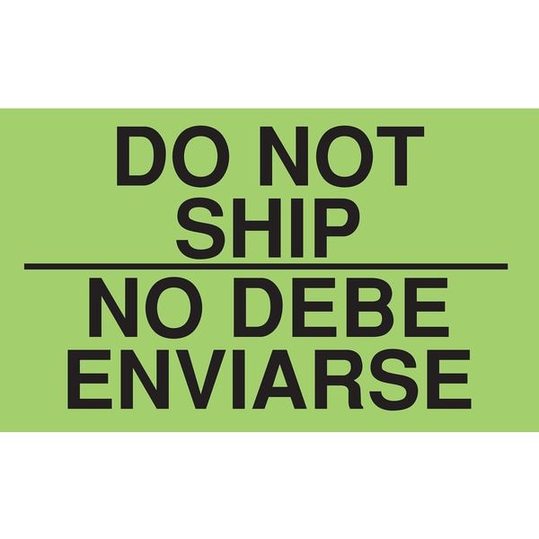 Instructional Handling Label, Language Spanish, Primary Label Subject Care Instruction, Message Header Do Not, Message Do Not Ship/No Debe Enviarse, Label Width 5 in, Label Height 3 in, Material Adhesive Back, Paper, Background Color Green, Labels per Roll 50, Package Quantity 50