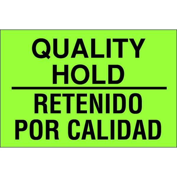 Instructional Handling Label, Language Spanish, Primary Label Subject Receiving, Message Header Inspection, Message Quality Hold/Retendo Por Calidad, Label Width 3 in, Label Height 2 in, Material Adhesive Back, Paper, Background Color Green, Labels per Roll 50, Package Quantity 50