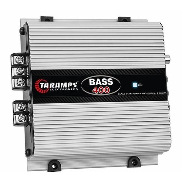 * Reference BASS 400* Operation Class Class D* Single Channel Operatrion* Max Output Power at 13.8 VDC - 2 OHMS: 400 W RMS* at 13.8 VDC - 4 OHMS: 214 W RMS* Input Sensitivity RCA: 320mV - WIRE: 6V* Signal Noise/Ratio > 90dB* Frequency Response 8Hz to 255Hz -3dB* Crossover High Pass HPF Variable 8 to 30Hz -12dB/8* Crossover Low Pass LPF Variable 55 to 250Hz -12dB/8* Bass Boost Parametric 35 to 55Hz. 0 to +6dB* Input Impedance 10K OHMS RCA / 1K OHMS Wire* Total Harmonic Distortion THD 0.05%* Protection System Short into Output / Thermal* Maximum Supply Voltage 16VDC* Idle Consumption 0.5 Amp.* Musical Maximum Consumption at 13.8VDC: 17.5 Amp.* Sinusoidal Signal Maximum Consumption 100Hz 13.8VDC: 35 Amp.* Dimensions WxHxD 134 x 42 x