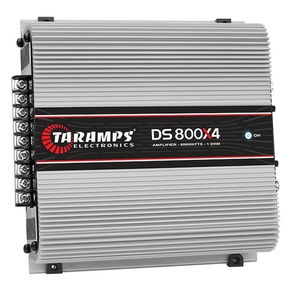 * Product Line: DS. * Reference: DS 800x4. * Number of Channels: 4. * Max Output Power: at 12.6 VDC - 1 OHM: 800W RMS 4 x 200W RMS at 12.6 VDC - 2 OHMS: 500W RMS 4 x 125W RMS at 12.6 VDC - 4 OHMS: 240W RMS 4 x 60W RMS. * Signal Noise/Ratio: >96dB. * Frequency Response: 10Hz a 25KHz. * Input Impedance: 10K OHM. * Amplifier Class D 800 watts RMS 4 channels 200W