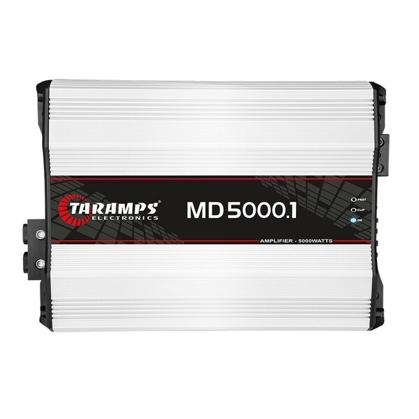Unlock superior sound with the Taramps MD 5000.1 amplifier, delivering 5000 Watts RMS and full-range audio 10Hz to 10KHz. Perfect for diverse car audio setups, this high-efficiency, mono module ensures crystal-clear quality across all frequenciesThe Taramps MD 5000.1 at the 1 or 2-ohm version has been carefully designed with the highest technology, offering high efficiency and performance for various types of car audio systems. This amplifier covers the whole frequency range, that is to say that it is a FULL RANGE 10Hz10 KHz -3dB module. It is classified as mono and has a channel with a maximum power of 5000-Watts RMS. Welcome to Taramps audio world. DIMENSIONS: 8.98-in x 2.76-in x 12.87-in 228 x 70 x 327mm POWER: 5.000 Watts CONNECTIVITY: Single Channel Applications CROSSOVER HIGH PASS HPF: 10Hz 90Hz -12dB/8 Variable CROSSOVER LOW PASS LPF: 90Hz 10KHz -12dB/8 Variable INPUT IMPEDANCE: 15K Ohms PROTECTION SYSTEM: Short-Circuit to Output, Short on output compared to GND, Low impedance at output, High/Low supply voltage and Thermal protection. MINIMUM SUPPLY VOLTAGE: 9VDC MAXIMUM SUPPLY VOLTAGE: 16VDC CONSUMPTION AT REST: 1.20A MAXIMUM MUSIC CONSUMPTION: 244.50A MAXIMUM CONSUMPTION IN SINUSOIDAL SIGNAL: 489A WEIGHT: 9.28lb 4.22Kg EAN: 7898556844697