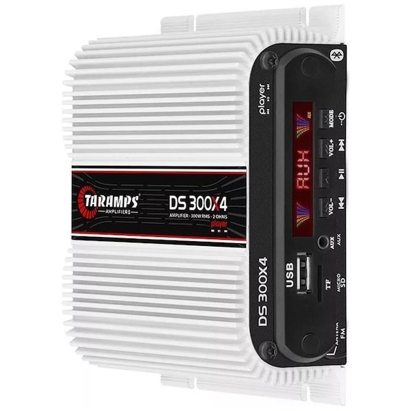* Idle Consumption: 0.60A* Equalization: NOR FLAT / POP/ ROC / JAZ / COU * Musical Consumption at 13.8VDC: 14A* Number of Channels: 4* Output Power at 13.8VDC - 4 OHMS: 300W RMS 4 x 75W RMS** 2 Bridged Channels - 4 Ohms: 300W RMS 2 x 150W RMS* Frequency Response Full Range: 45Hz 20KHz -3dB*** Minimum Output Impedance: 2 Ohms* Signal- to-noise Ratio: >90dB* Input Sensitivity Level 100%: 250mV * Output Power at 13.8VDC - 2 OHMS: 2 Ohms* Protection System: Output Short Circuit* Minimum Supply Voltage: 9VDC* Maximum Supply Voltage: 16VDC* Rated Power Consumption: 28A* Dimensions W x H x L: 5.43-in x 1.93-in x 4.72-in* Weigth: