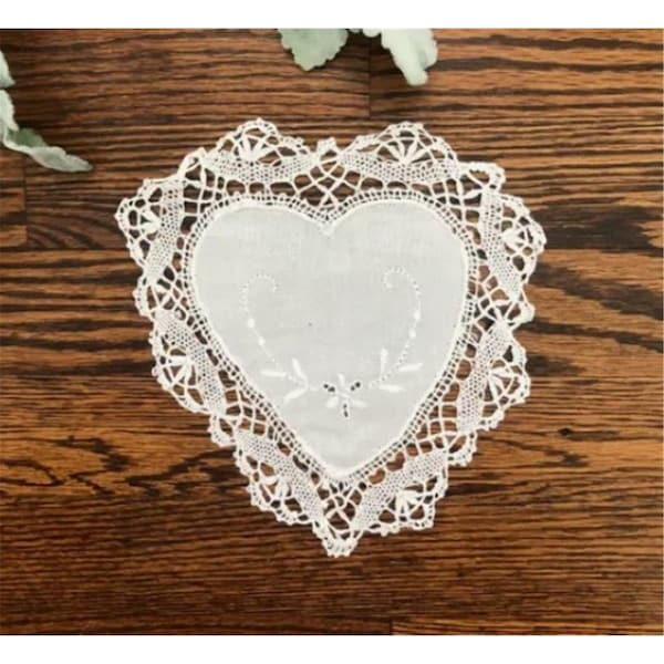 8 in. Embroidered Crochet Doily with Heart Shape Cluny Lace