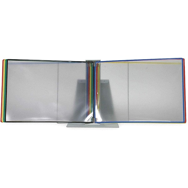 Document Display Kit, Desktop, Height 12 1/2 in, Length 38 in, Depth 24 in, Number of Pockets 10, Sheet Size 11 x 17 in, Sheet Capacity 20, Viewing Angle 60 or 30 Degrees , Color Assorted, Material Plastic/Steel, Includes (10) Assorted Color Pockets, Desk Stand, Snap-On Index Tabs