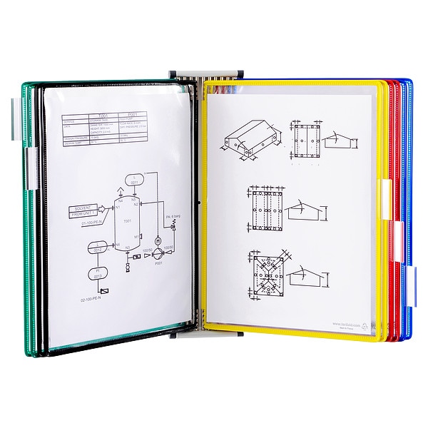 Document Display Kit, Wall, Height 12 1/2 in, Length 20 in, Depth 15 in, Number of Pockets 10, Sheet Size 8-1/2 x 11 in, Sheet Capacity 20, Viewing Angle 90 Degrees , Color Assorted, Material Plastic/Steel, Includes (10) Assorted Color Pockets, Snap-On Index Tabs