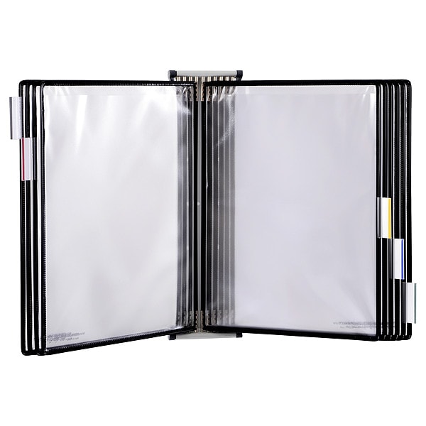 Document Display Kit, Wall, Height 12 1/2 in, Length 20 in, Depth 15 in, Number of Pockets 10, Sheet Size 8-1/2 x 11 in, Sheet Capacity 20, Viewing Angle 90 Degrees , Color Black, Material Plastic/Steel, Includes (10) Black Framed Pockets, Snap-On Index Tabs