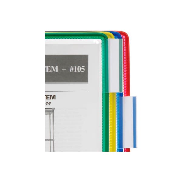 metal tabs label pages by attaching to edges for document pockets. Use with desk stand, wall unit or rotary display styles. Sold in packages of 10.
