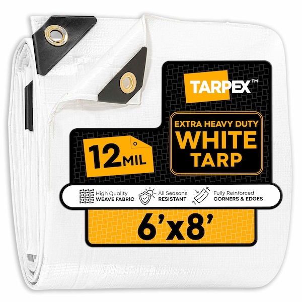 Extra Heavy Duty Tarp, 6 ft x 8 ft, 12 Mil, White, Polyethylene