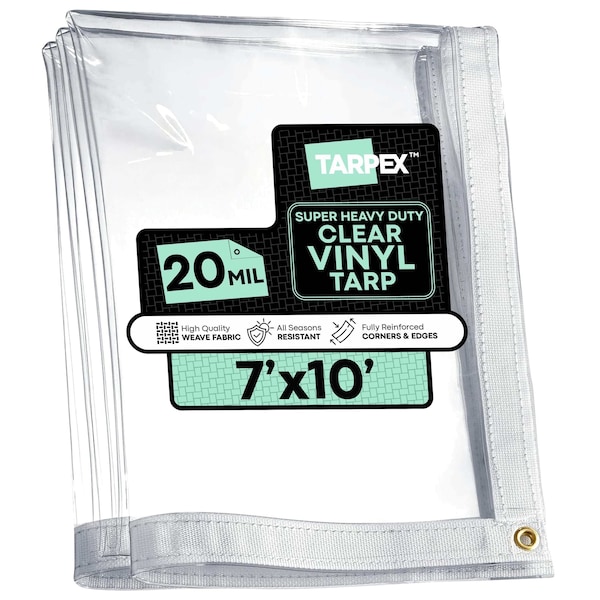 The TARPEX 20 Mil Clear Vinyl Tarp delivers full visibility with powerful protection. Made from super heavy-duty marine-grade PVC vinyl, this tarp is fully transparent, allowing you to easily see whats underneath-ideal for covering and securing loads, creating clear awnings or weather barriers, or setting up temporary walls and curtains for outdoor spaces.The edges are double-stitched with a 2-inch wide white polypropylene web hem for added reinforcement and superior tear resistance. Rustproof brass grommets are spaced every 24 inches along the hemmed perimeter, allowing for strong, secure tie-downs even in high winds or rough conditions.Built to last, this tarp is tear-, puncture-, and rip-resistant. Its also waterproof, weatherproof, dustproof, and UV-resistant, performing reliably in extreme temperatures as low as -30°F. Finished sizes run true to size.