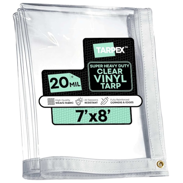 The TARPEX 20 Mil Clear Vinyl Tarp delivers full visibility with powerful protection. Made from super heavy-duty marine-grade PVC vinyl, this tarp is fully transparent, allowing you to easily see whats underneath-ideal for covering and securing loads, creating clear awnings or weather barriers, or setting up temporary walls and curtains for outdoor spaces.The edges are double-stitched with a 2-inch wide white polypropylene web hem for added reinforcement and superior tear resistance. Rustproof brass grommets are spaced every 24 inches along the hemmed perimeter, allowing for strong, secure tie-downs even in high winds or rough conditions.Built to last, this tarp is tear-, puncture-, and rip-resistant. Its also waterproof, weatherproof, dustproof, and UV-resistant, performing reliably in extreme temperatures as low as -30°F. Finished sizes run true to size.