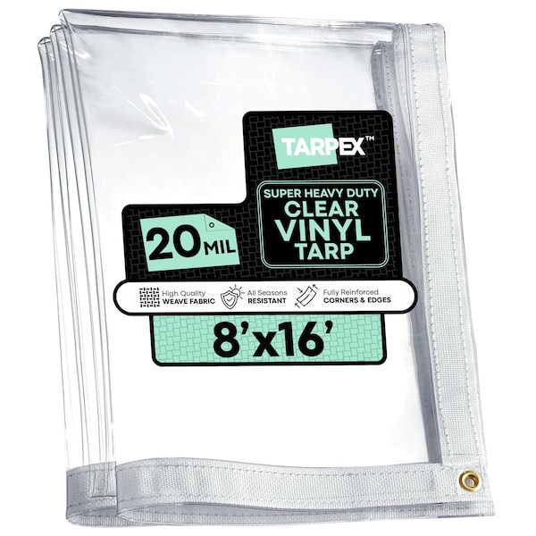 The TARPEX 20 Mil Clear Vinyl Tarp delivers full visibility with powerful protection. Made from super heavy-duty marine-grade PVC vinyl, this tarp is fully transparent, allowing you to easily see whats underneath-ideal for covering and securing loads, creating clear awnings or weather barriers, or setting up temporary walls and curtains for outdoor spaces.The edges are double-stitched with a 2-inch wide white polypropylene web hem for added reinforcement and superior tear resistance. Rustproof brass grommets are spaced every 24 inches along the hemmed perimeter, allowing for strong, secure tie-downs even in high winds or rough conditions.Built to last, this tarp is tear-, puncture-, and rip-resistant. Its also waterproof, weatherproof, dustproof, and UV-resistant, performing reliably in extreme temperatures as low as -30°F. Finished sizes run true to size.
