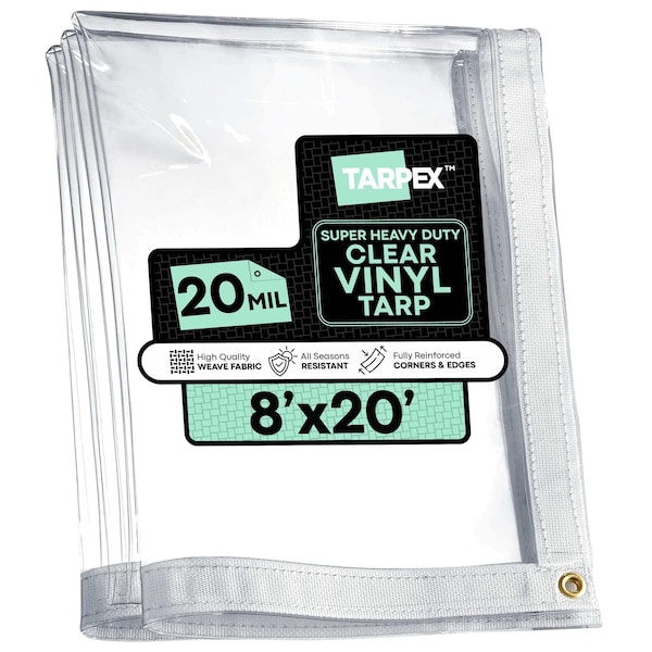 The TARPEX 20 Mil Clear Vinyl Tarp delivers full visibility with powerful protection. Made from super heavy-duty marine-grade PVC vinyl, this tarp is fully transparent, allowing you to easily see whats underneath-ideal for covering and securing loads, creating clear awnings or weather barriers, or setting up temporary walls and curtains for outdoor spaces.The edges are double-stitched with a 2-inch wide white polypropylene web hem for added reinforcement and superior tear resistance. Rustproof brass grommets are spaced every 24 inches along the hemmed perimeter, allowing for strong, secure tie-downs even in high winds or rough conditions.Built to last, this tarp is tear-, puncture-, and rip-resistant. Its also waterproof, weatherproof, dustproof, and UV-resistant, performing reliably in extreme temperatures as low as -30°F. Finished sizes run true to size.
