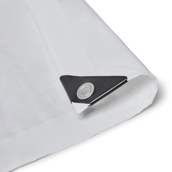 Reinforced Poly TarpsTarp Material: Woven Coated PolyethyleneFabric Weight: 3.5 oz. Per Square YardTarp Thickness: 6 MilsMesh Count: 10 x 10 Denier: 900Tarp Color: WhiteTarp Finish: Waterproof, UV and Mildew ResistantGrommets: #2 Grommets, with spacing approx. 36''Tarp Size: White Poly Tarps are cut size and finish 6'' smaller in size Premium White Poly Tarps typically ship within 1 to 3 business days.
