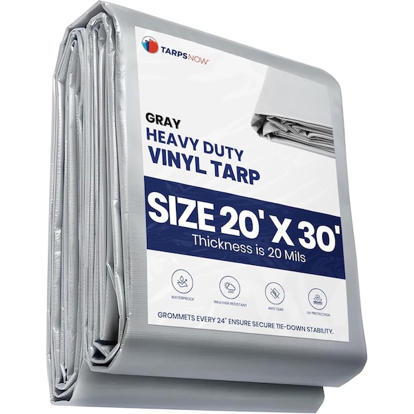 TarpsNow offers premium-grade heavy-duty waterproof vinyl tarps that are cost-effective and suitable for a wide variety of industrial, commercial, or construction tarp applications. These waterproof tarps are crafted from vinyl with PVC-coated material, making them dense and durable. Our heavy duty waterproof tarps are capable of withstanding any hostile environment from -40 degrees F to 160 degrees F. These weatherproof tarps are 100% waterproof, puncture-free, and won't be torn easily. Our 18oz vinyl tarps are manufactured with triple-thick reinforced hems sewn and durable heat-welded seams around the perimeter with sturdy polyester which are capable of withstanding tough weather conditions to remain flexible even under harsh arctic temperatures. Gray color on both sides. These waterproof heavy duty tarps are built with #4 metal grommets embedded in the fabric hems every 24 inches. Our grommets won't snap or buckle when securing even the most cumbersome loads. Available in multiple sizes to meet you preferences, these full-finished tarps provide exact dimensions as advertised. You can create a tent for camping, fairs, and more outdoor activities with our tarps. Perfect for camping or groundsheets, covering vehicles like cars, trucks, trailers, boats, agricultural materials, furniture, etc. FEATURES: Industrial-grade tarps Made from heavy-duty PVC coated vinyl Flexible and provides long-lasting durability 100% waterproof, puncture-free, and won't be torn easily Thickness: 20 Mil 18 ounces per sq. yd. With #4 metal grommets Low and High-Temperature Flexibility Great for construction, agriculture, commercial and industrial applications : These Gray vinyl tarps are waterproof - 20 mil covers are finished size +/- 2'' tolerance