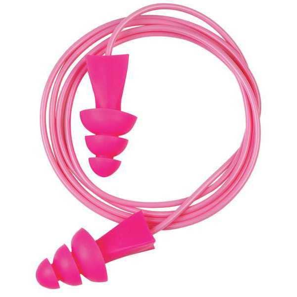 Ear Plugs, Noise Reduction Rating 27 dB, Earplug Shape Flanged, Insertion Method Push-In, Reusability Reusable, Cord Options Corded, Earplug Size S, Earplug Material Vinyl, Earplug Packaging Bulk Box, Earplug Pair Pack Type Plastic Bag, Band Color Pink, Series Tri-Grip, Cord Material PVC, Band Material PVC, Cord Color Pink, Standards ANSI S3.19-1974, CSA Class AL, Pairs per Package 100, Earplug Color Pink, Metal Detectable No, Package Quantity 100
