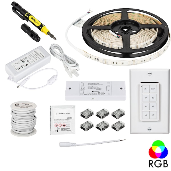 16 Ft. 130 Lumens/Ft. 12V, Accent Output Multi-Color Rgb Wireless Controller Tape Light Kit